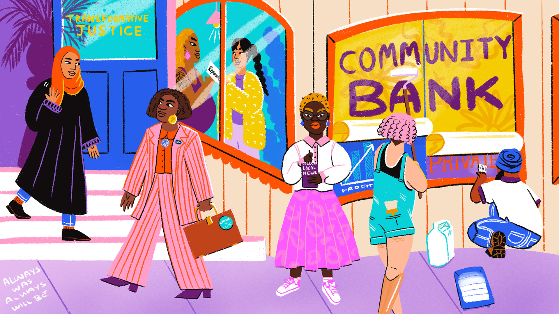 IWDA synthesised these findings, and commissioned me to visualise six of these Feminist Futures, create storyboards and design the report into a scrollytelling online zine.